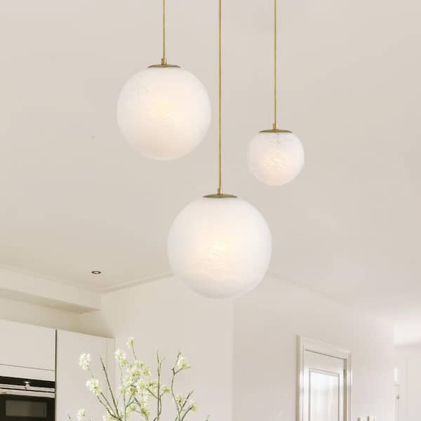 Pixie 3-Light Brushed Gold Modern Globe Chandelier for Entryways with Mixed-Size Etched Cloud Glass Shades