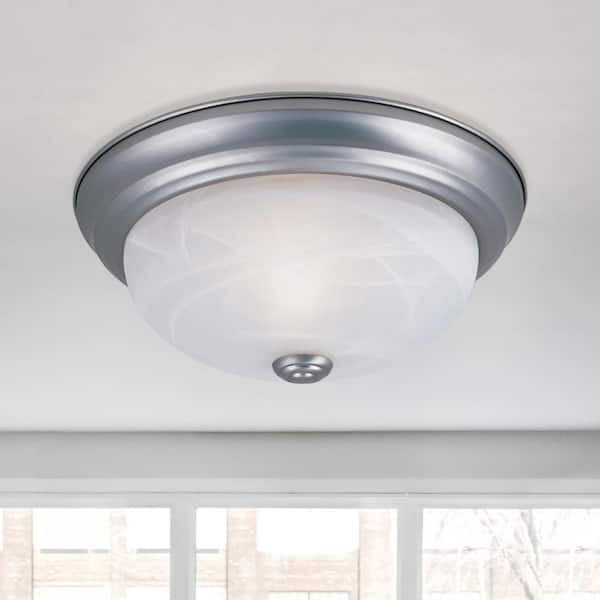 • Flush mount features an alabaster glass shade for diffuse light