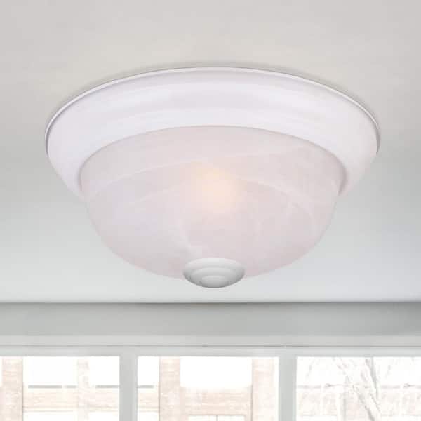 • Flush mount features an alabaster glass shade for diffuse light
