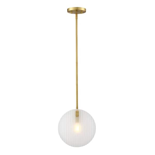 Sky 60-Watt 1-Light Brushed Gold Transitional Pendant Light with Etched Fluted Glass Shade and No Bulbs Included