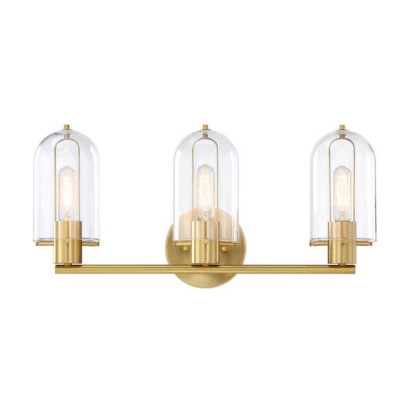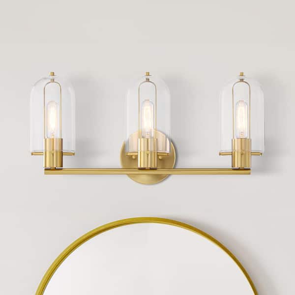 Skylar 24.5 in. 3-Light Brushed Gold Glam Vanity Light with Clear Glass Shades