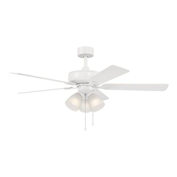Stellant 52 in. Indoor/Covered Outdoor Matte White Standard Mount Ceiling Fan with Light Kit and Pull Chain Control