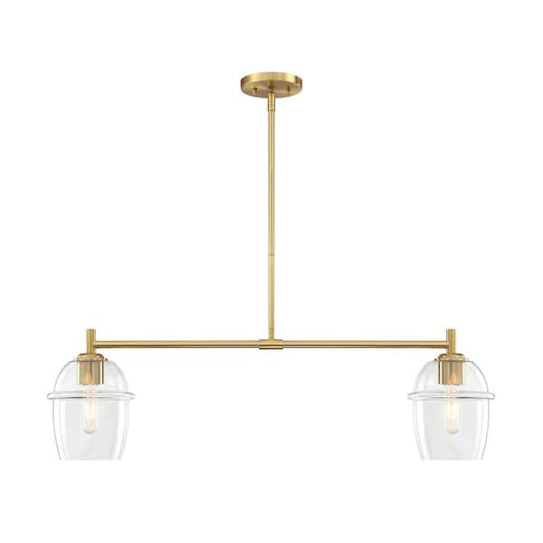 Summer Jazz 2-Light Brushed Gold Transitional Linear Chandelier for Kitchen Islands with No Bulbs Included