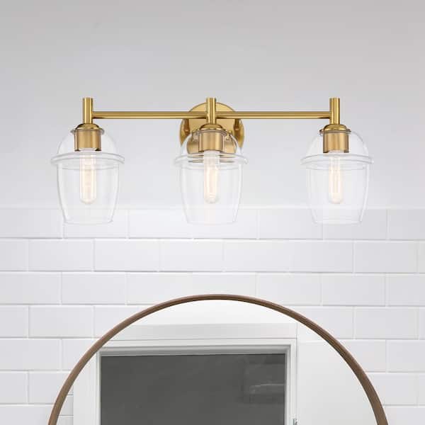 Summer Jazz 24 in. 3-Light Brushed Gold Transitional Vanity Light with Clear Glass Shades