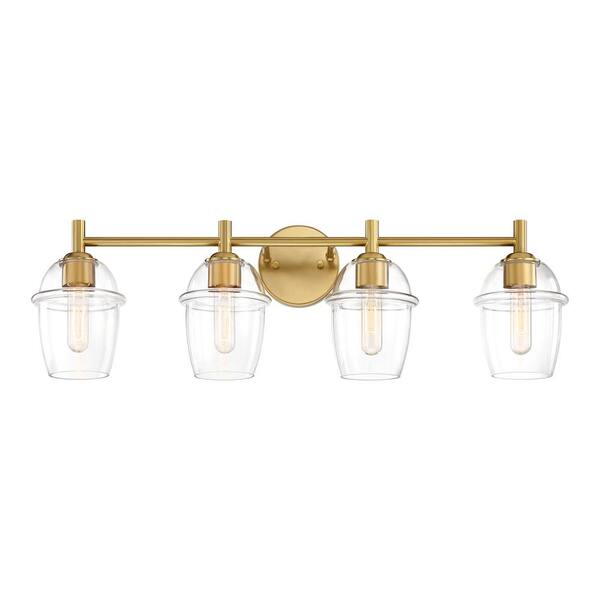 Summer Jazz 32 in. 4-Light Brushed Gold Transitional Vanity Light with Clear Glass Shades