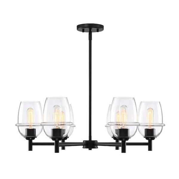 Summer Jazz 6-Light Matte Black Transitional Sputnik Chandelier for Dining Areas with No Bulbs Included