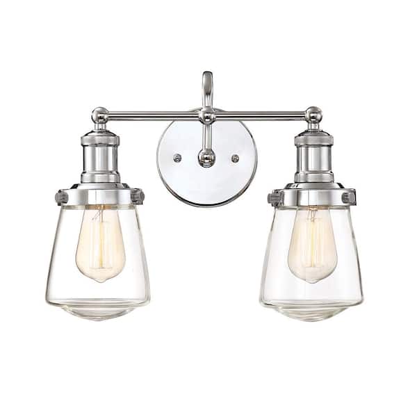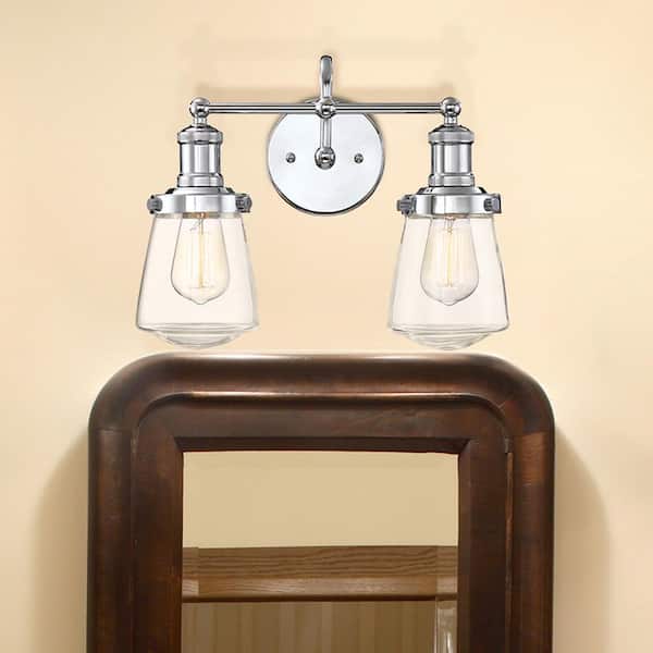 Taylor 15.25 in. 2-Light Chrome Industrial Vanity Light with Clear Glass Shades