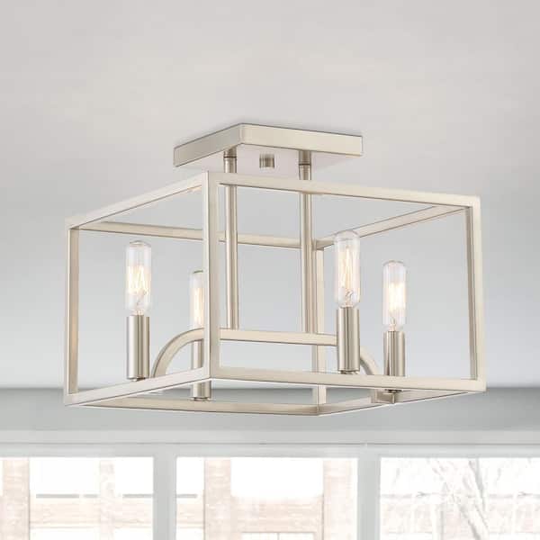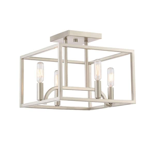 Uptown 12 in. 4-Light Satin Platinum Minimalist Entryway Semi-Flush Mount with Open Cage Design