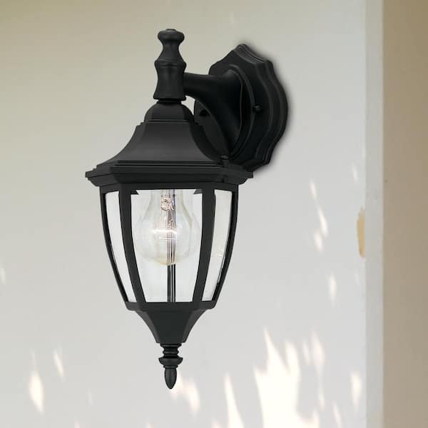 Waterbury 14.25 in. Black 1-Light Outdoor Line Voltage Wall Sconce with No Bulb Included