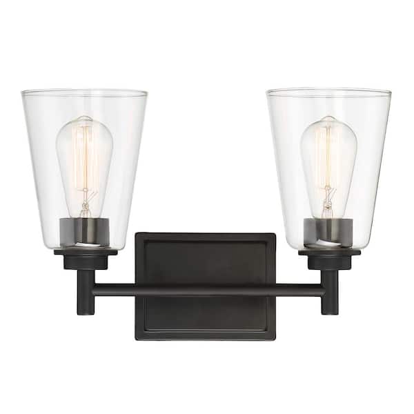 Westin 15 in. 2-Light Matte Black Industrial Vanity Light with Clear Glass Shades