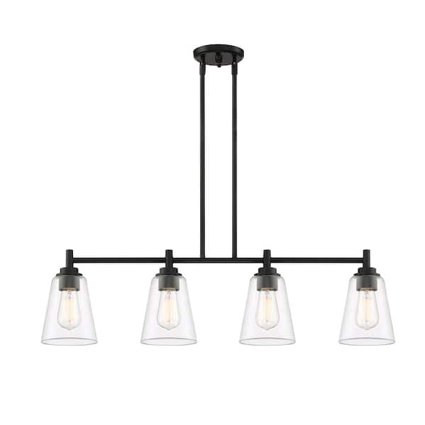 Westin 4-Light Matte Black Industrial Linear Chandelier for Kitchen Islands with No Bulbs Included