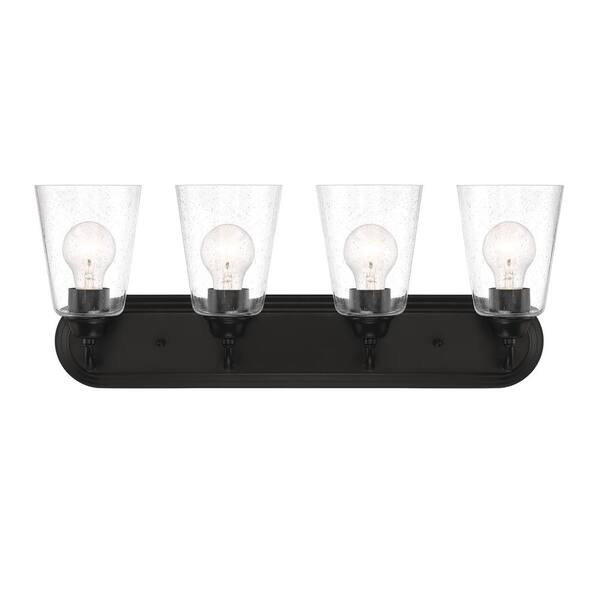Zane 26 in. 4-Light Matte Black Industrial Vanity Light with Clear Glass Shades