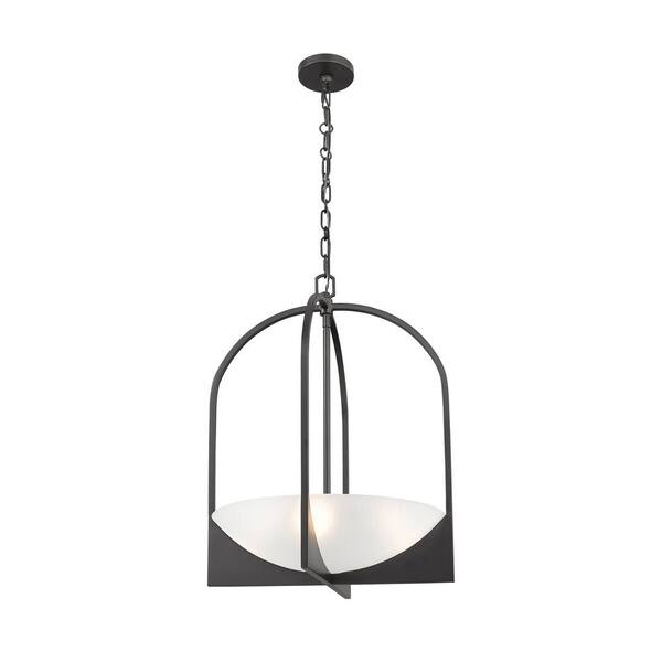 Devon 60-Watt 18 in. 4 Light Matte Black Shaded Pendant Light with Sand Blast Glass Shade, No Bulbs Included