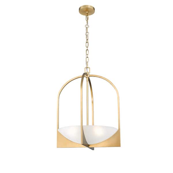 Devon 60-Watt 18 in. 4 Light Modern Gold Shaded Pendant Light with Sand Blast Glass Shade, No Bulbs Included