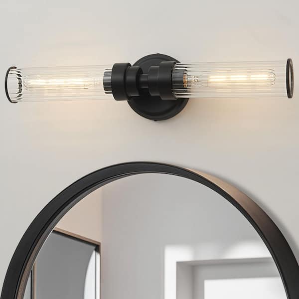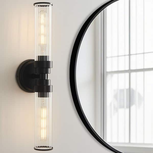 2-Light Vintage Black Wall Sconce with Fristed Clear Glass Shade Industrial Antiqued Bathroom Vanity Light