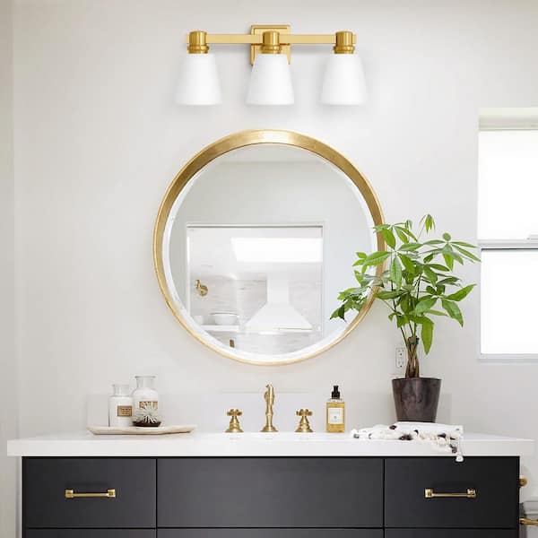 22.05 in. 3-Light Gold Vanity Light with Frosted Glass Shade, Suitable for Bathroom Living Room etc. Dimmable