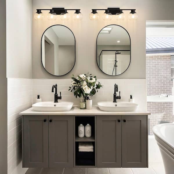 29.53 in. 4-Light Black Bathroom Vanity Light with Clear Glass Shades, Bulbs not Included
