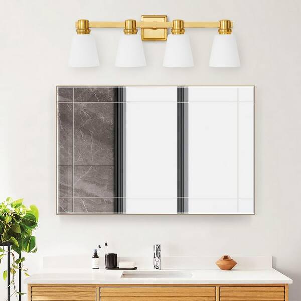 30.3 in. 4-Light Gold Vanity Light with Frosted Glass Shade, Suitable for Bathroom Living Room etc, Dimmable