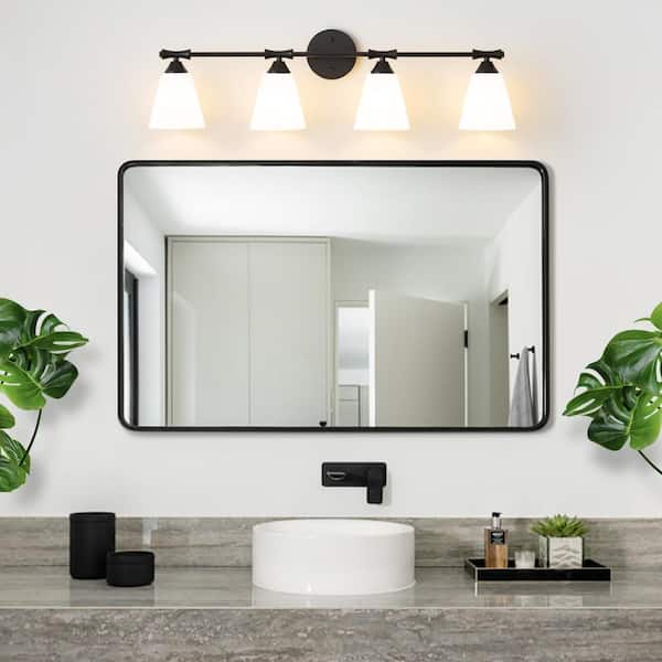 33.86 in. 4-Lights Black Bathroom Vanity Light Fixture with Opal Frosted Glass Shade