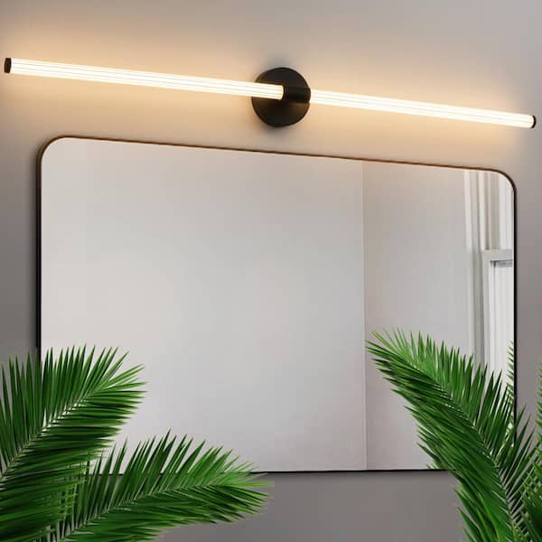 48.9in. 2-Light Black LED Vanity Light w/ 25-Watt 3600K Warm Light Bathroom Vanity Light Dimmable LED 360° Full Lighting