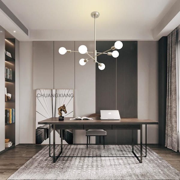 6-Light Vintage Nickel Sputnik Chandelier for Living Room, Mid Century Ceiling Lights without Glass Shade and Bulb
