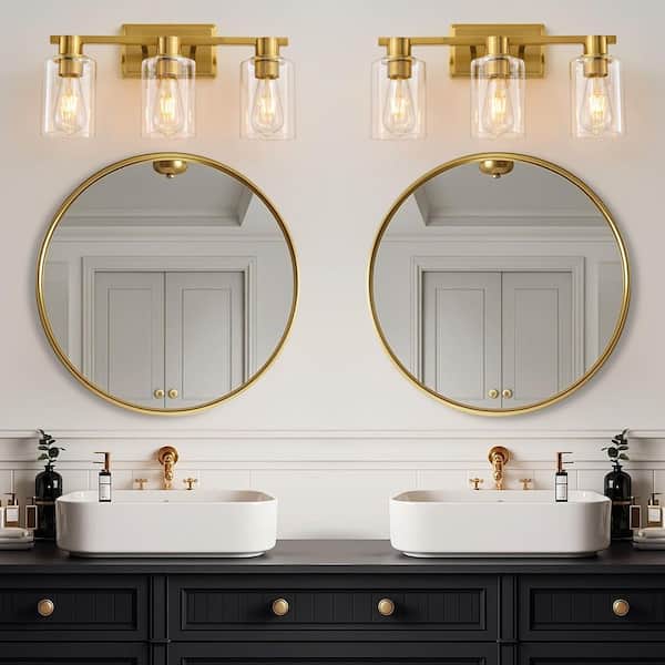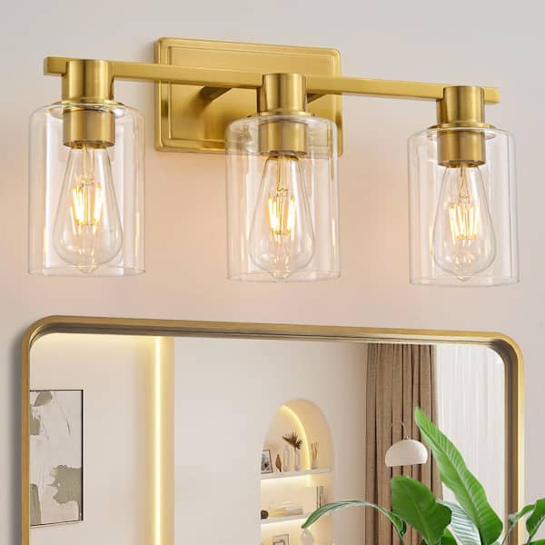 Farmhouse 19.68 in. 3-Light Gold Modern Industrial Indoor Vanity Light with Clear Glass Shades, Bulbs Not Included