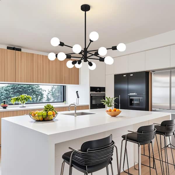 Modern 12 Light Black Sputnik Chandelier Ceiling Light Height Adjustable for Dining Room with no Bulbs Included