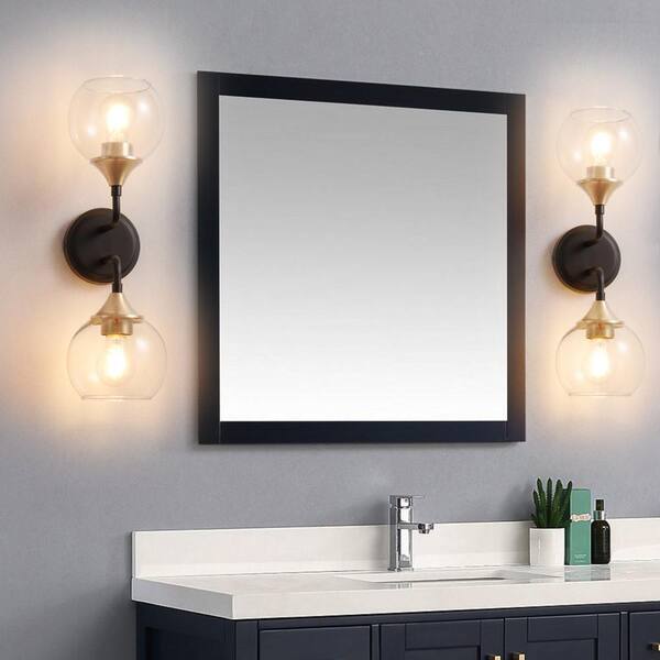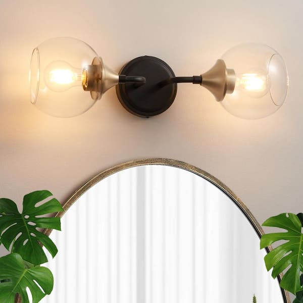 Modern 14.1 in. 2-Light Black and Gold Wall Sconce with Clear Glass Shade, Perfect for Modern or Vintage Style Bathrooms