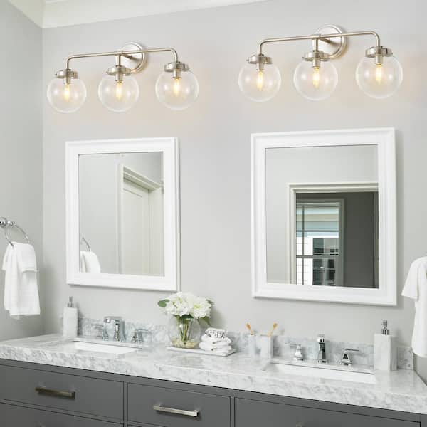 Modern 22.44 in. 3-Light Nickel Bathroom Vanity Light with Clear Glass Shades, Suitable Bathrooms, Powder Rooms, etc.