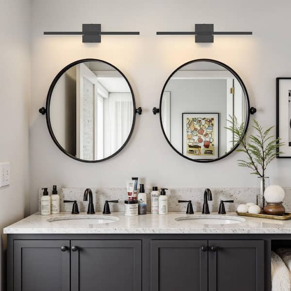 Modern 23.6 in. 2-Light Black LED Vanity Light Bar with 360° Rotation 24W Bathroom Vanity Light