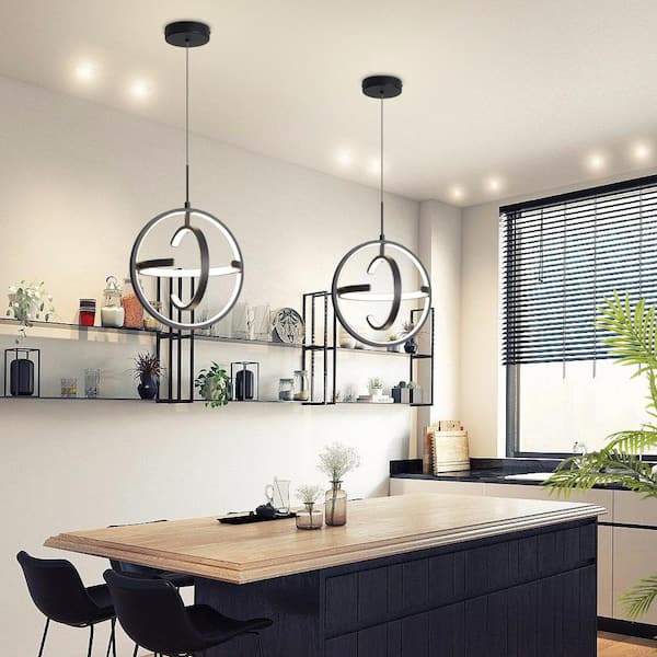 Modern 3-Light Dimmable Integrated LED Black Pendant Light Globe Chandelier Adjustable Height for Dining Room