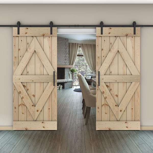 Diamond Series 60 in. x 84 in. Fully Set Up Unfinished Pine Wood Sliding Barn Door with Hardware Kit