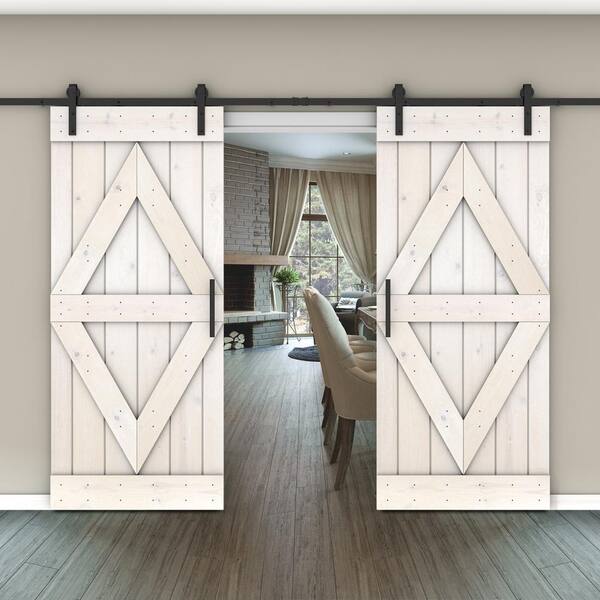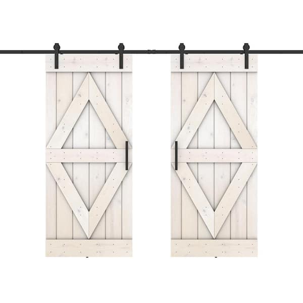 Diamond Series 60 in. x 84 in. Fully Set Up White Finished Pine Wood Sliding Barn Door with Hardware Kit