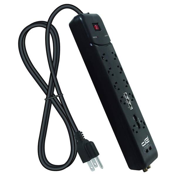 8 ft. 10-Outlet Heavy Duty Power Strip Surge Protector with 2 USB Ports