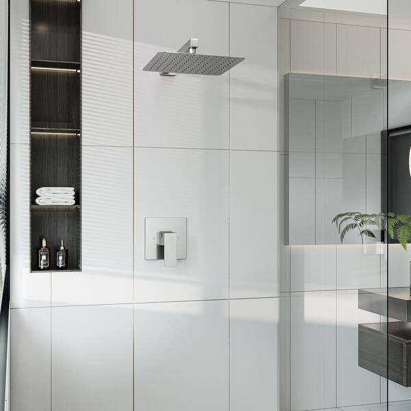 1-Spray Pattern with 1.8 GPM 10 in. with Wall Mount Square Fixed Shower Head in Brushed Nickel (Valve Included)