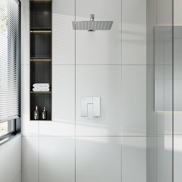 1-Spray Pattern with 1.8 GPM 10 in. with Wall Mount Square Fixed Shower Head in Chrome (Valve Included)
