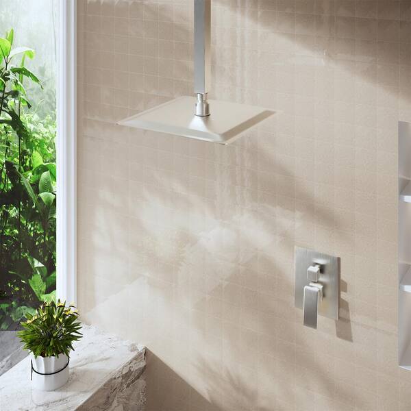 1-Spray Pattern with 2.5 GPM 10 in. Wall Mount Rain Square Fixed Shower Head in Brushed Nickel