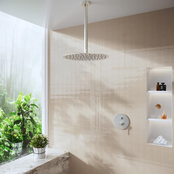 11.9 in. Stainless Steel Round Ceiling Mount Shower Arm with Flange in Brushed Nickel