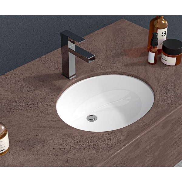 19 in. Oval Undermount Bathroom Sink in White Ceramic Seamless Bath Vessel Sink with Overflow