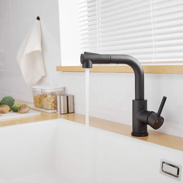 2-Spray Patterns Single Handle Pull Down Sprayer Kitchen Faucet with Water Supply Hoses in Matte Black
