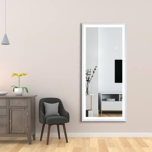22 in. W x 48 in. H Framed Rectangular Wall-Mounted LED Light Full Body Bathroom Vanity Mirror in Brushed Silver