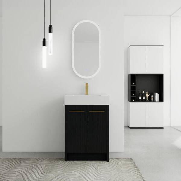 24 in. Freestanding Bath Vanity with White Resin Top and Soft Close Doors in Black