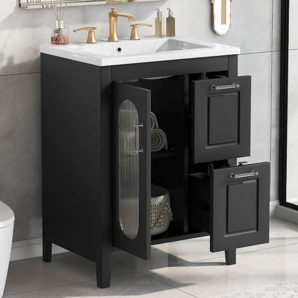24 in. Single Sink Freestanding Black Bath Vanity with White Ceramic Top Unassembled