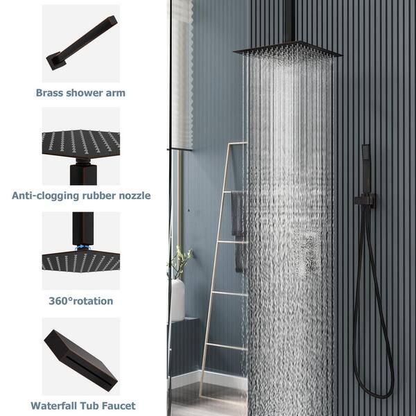 3-Spray Fixed Ceiling Mount Dual Handheld Shower Head 1.8 GPM Shower System with Tub Faucet in Oil Rubber Bronze