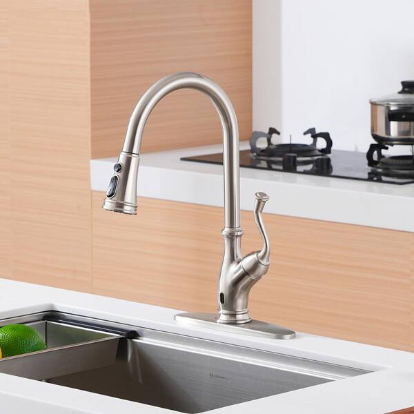 3-Spray Patterns 1.8 GPM Single Handle Touchless Pull Down Sprayer Kitchen Faucet with Deckplate in Brushed Nickel