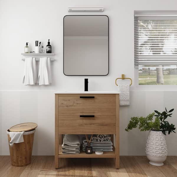 30 in. Freestanding Single Sink Plywood Bath Vanity in Imitative Oak with White Ceramic Top