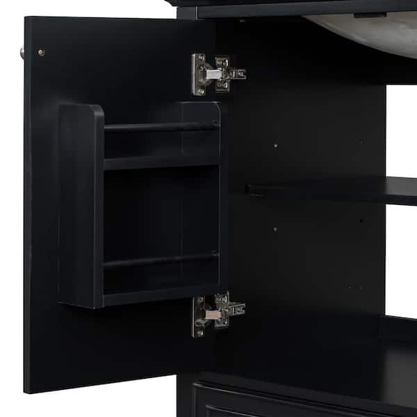 30 in. Single Sink Black Bath Vanity with White Ceramic Top Unassembled Freestanding Cabinet with Doors and Drawer