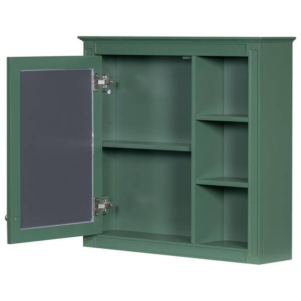 30 in. W x 18 in. D x 33 in. H Single Sink Freestanding Bath Vanity in Green with Resin Top and Bathroom Mirror Cabinet