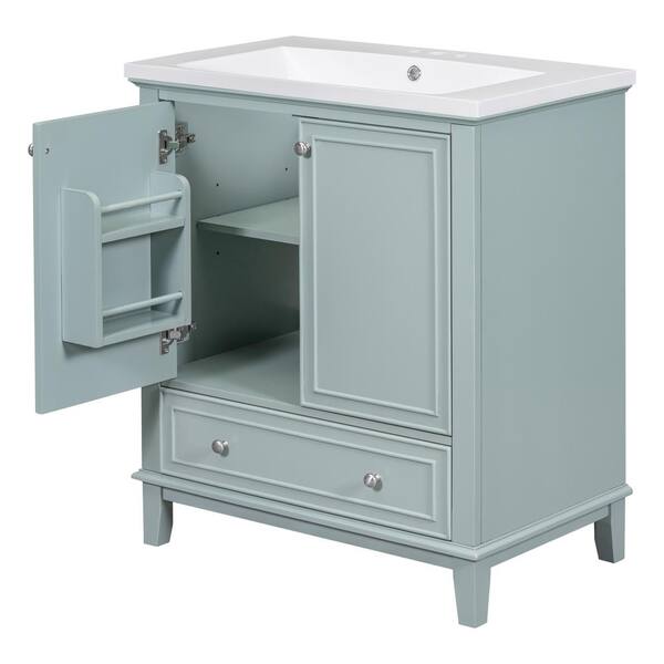 • 30 in. Green Bathroom Vanity with sleek ceramic sink and storage.