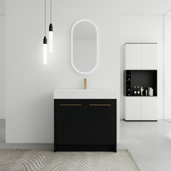 35.4 in. Freestanding Bath Vanity with White Resin Top and Soft Close Doors in Black